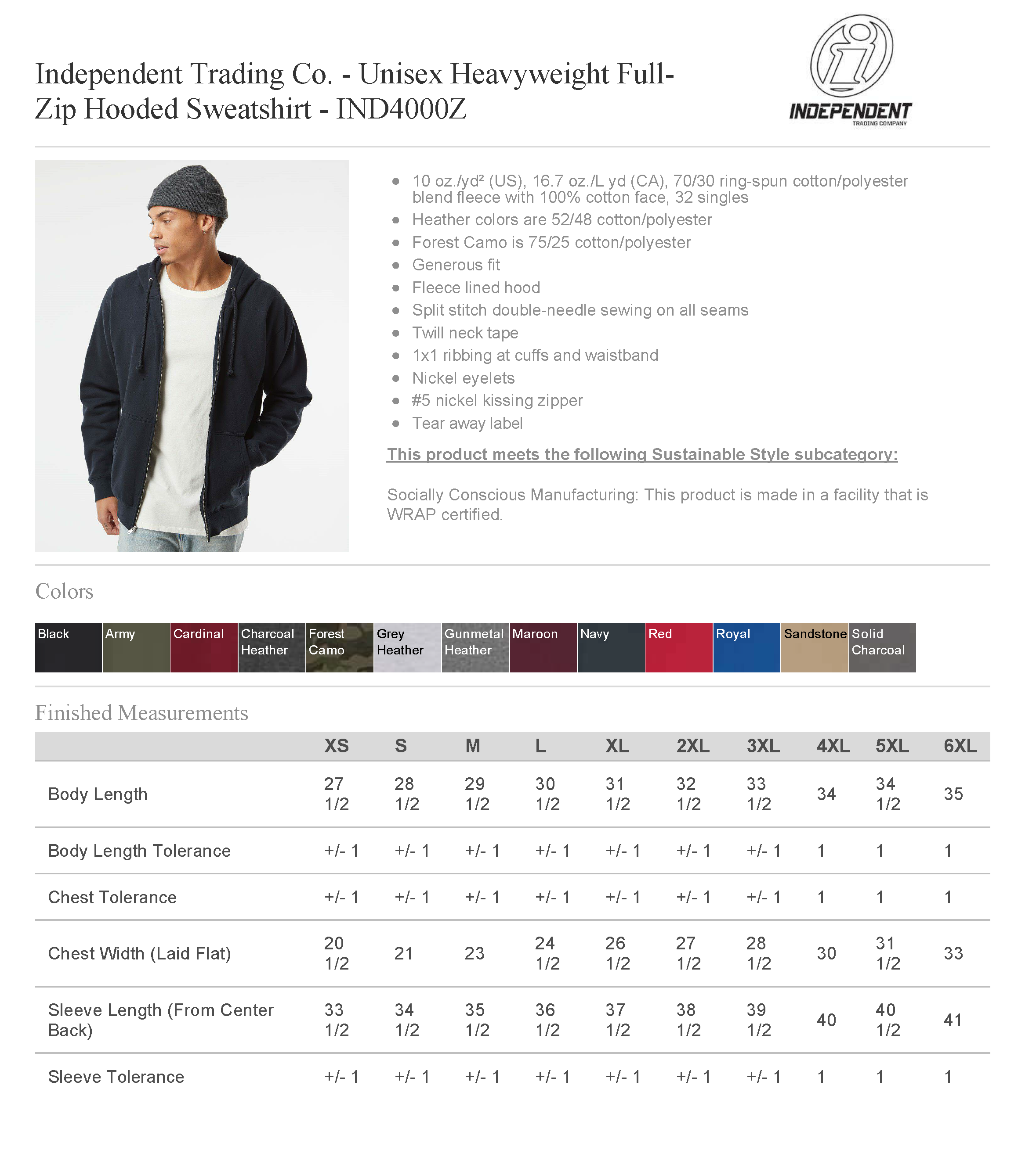 * Independent Trading Co. - 10 oz. Unisex Heavyweight Full Zip Hooded Sweatshirt - IND4000Z